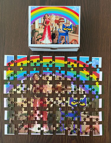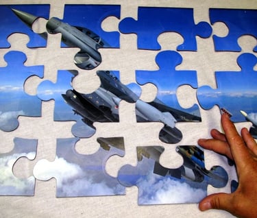 Level 6 puzzles are the largest and most difficult. Now that I have my Laser cutter, I can make puzzles with about 300 pieces maximum. Since the largest puzzle I can make right now is about 15" X 11", the puzzle pieces can get pretty small. These are for the most experienced puzzlers.